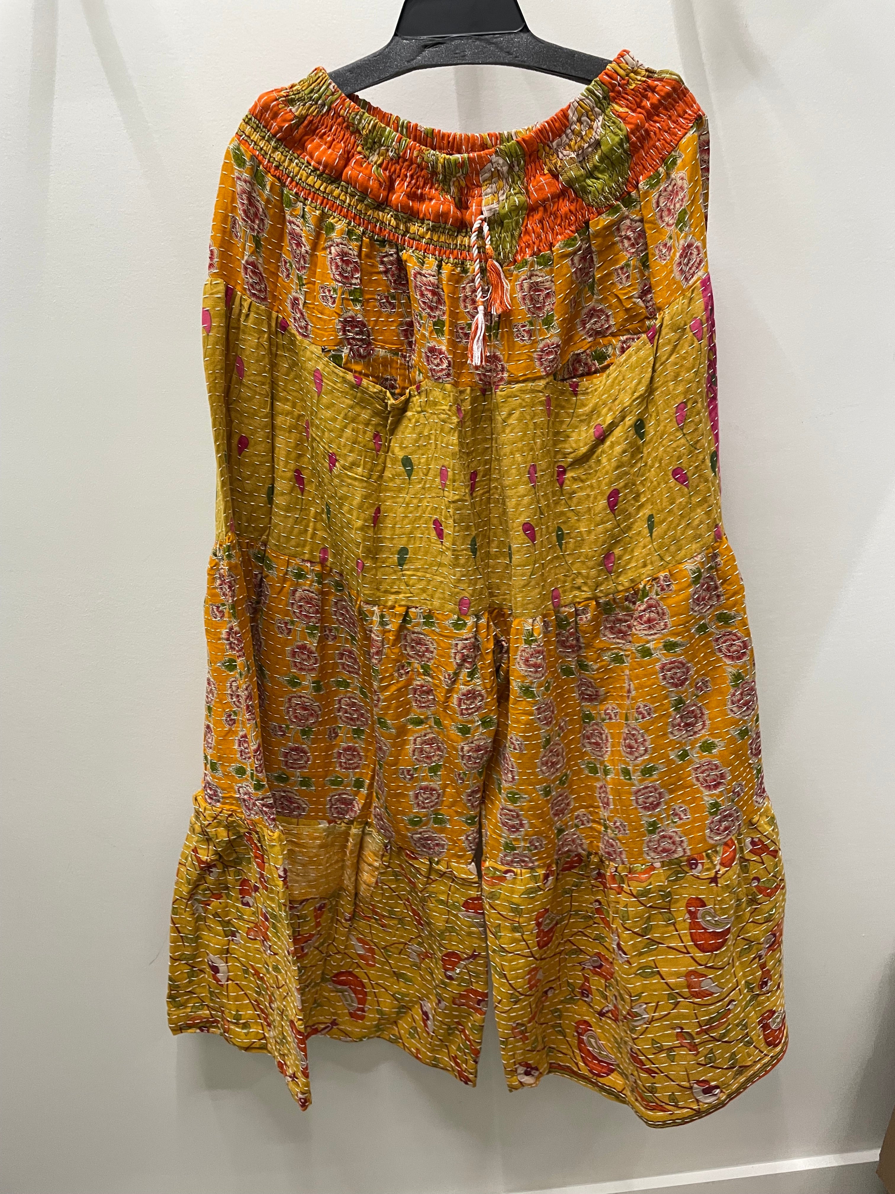 Free, fun and unique! Each Kantha Bae piece is made from upcycled materials. Cottons back to back and handstitched like quilting from India. Upcycled silk saris.