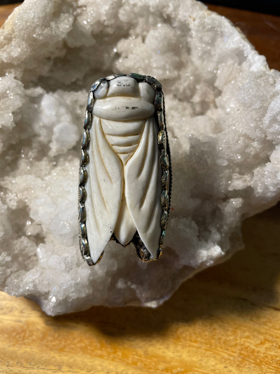 Cicada Carved in Bone Adjustable Ornate Ring