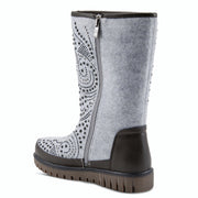 Introducing the Azura Agaxis Boot - a celebration for your feet! With a warm sparkly confetti design and gentle swirls of hematite, black, and silver crystals on a boiled wool upper, these boots will surely turn heads. Complete with an inside zipper, plush Sherpa lining, and removable padded insole, these boots offer style and comfort on a saw-tooth rubber sole.