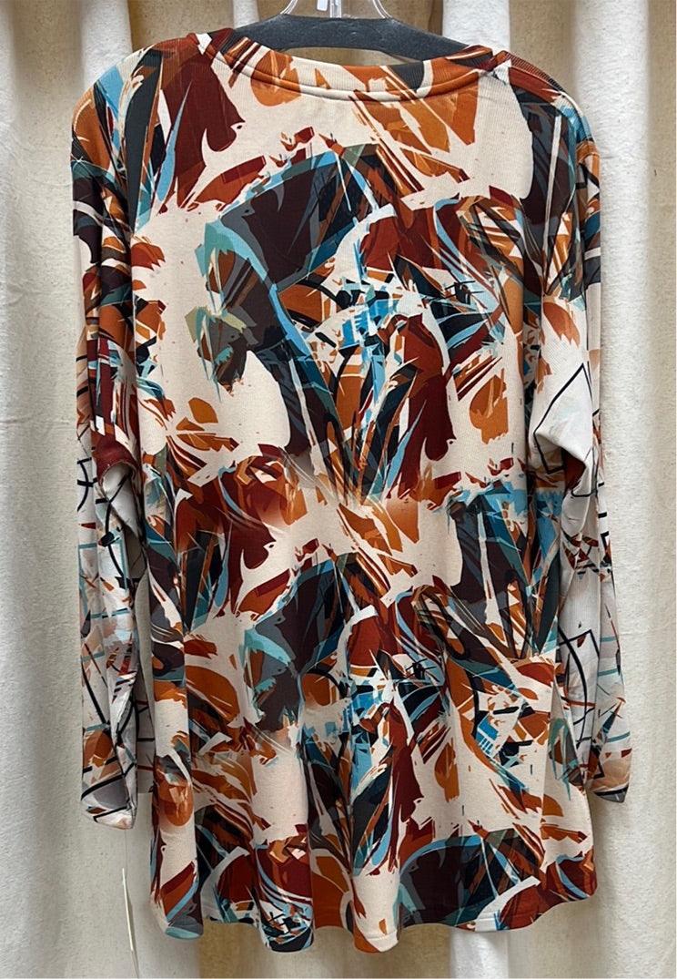 Lightweight tunic top in beautiful shades of beige, rust, aqua.
