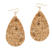 Cork teardrop earrings in slight shimmers are lightweight and easy to par with any outfit. Available in colors: Hemi, Brown and Silver.