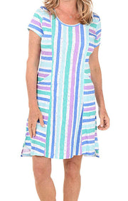 Escape by Habitat love to create dreamy resort wear for your next vacation in mind. All of their materials are light knit and unique. The Scoop Pocket Dress will be a go to whether you are running around about town or heading to the Caribbean. The short sleeves are easy to layer up if a jacket is needed, but otherwise the perfect length for all day comfort. This dress features princess seams, dual hip pockets, high-low hem line with side slits, and an A-line silhouette.