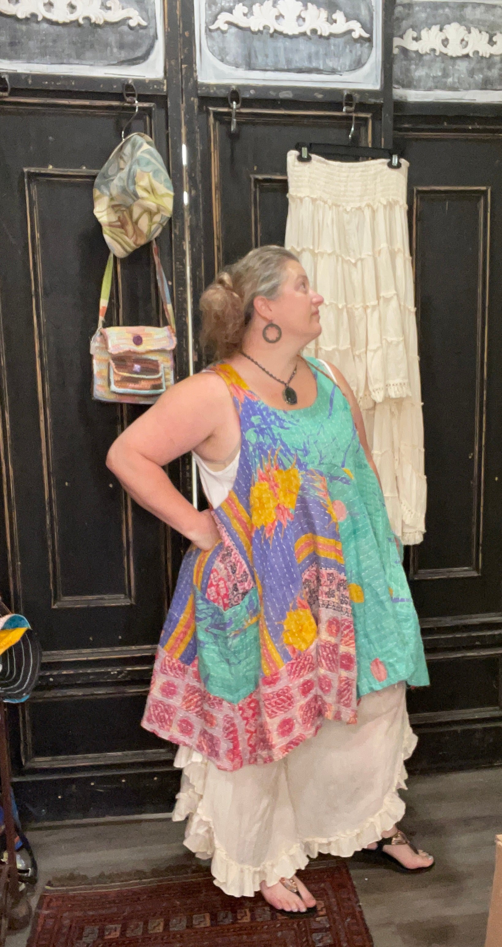 Embrace the colorful, playful vibes of the Kantha Sunrise Sleeveless Tunic from Jaded Gypsy. Made from upcycled kantha fabric, this whimsical top is perfect for layering or wearing as a short dress. Let your boho spirit shine with this fun and versatile piece!