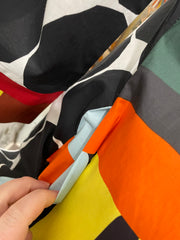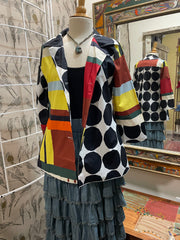 Expertly designed and crafted by Adore, the Mixed Media Blouse KK107 is a versatile addition to any wardrobe. Can be worn as a blouse, jacket, or top, and comes in a striking combination of white, black, yellow, green, brown, red, and sky blue. Features large buttons, a button down closure, pockets, and a polished collar for a professional and stylish look.