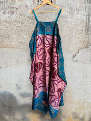 This shapeless, timeless maxi dress is made out of ultra lux crepe silk sari making it fully reversible. This dress is floaty in all the right ways. Features a square neckline and deep interior pockets on the outside and inside. Perfect to wear by itself in the summer or to layer for the fall/winter. Easy, breezy, for all seasons.