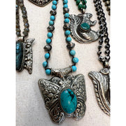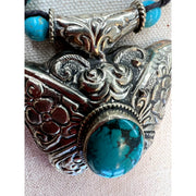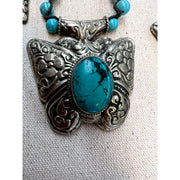 Turquoise and Beaded Ornate Butterfly Necklace