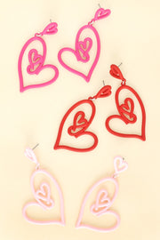 Add a little love to any outfit with these festive Valentine/Heart/Love themed earrings. Perfect for any occasion, these earrings feature hearts that will bring joy year round. Show someone you care with these timeless and fun earrings.